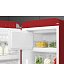 Дверца выполнена из термоформируемого полимера, боковые стенки - из стали, регулируемые полки - из стекла. Цвет ручек, профиля на полках дверцы, профиля на выдвижных ящиках и профиля на стеклянных полках - хром, цвет боковых стенок - красный.