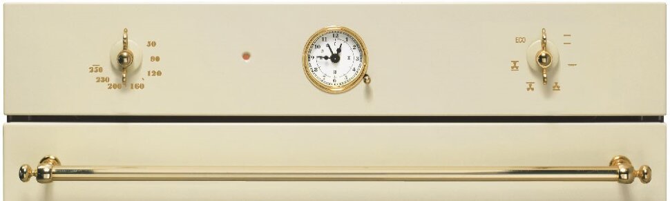 Встраиваемый электрический духовой шкаф SMEG SF800P предназначен для приготовления огромного ассортимента блюд, включая выпечку десертов и приготовление гриля. Классический дизайн в ретро исполнении с позолоченной фурнитурой позволяет органично вписать оборудование в интерьер. Встраиваемая установка обеспечивает существенную экономию пространства, создавая комфортные условия для готовки даже на небольшой кухне. Многослойное стекло дверцы в сочетании с системой охлаждения существенно снижают температуру внешних поверхностей, гарантируя максимальную безопасность.