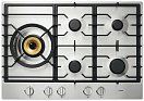 Выбор данного прибора чаще всего обусловлен тем, что в частный дом или квартиру проведен именно газ в качестве обогрева. Это оборудование абсолютно безопасно, так как оно обладает тщательно продуманной системой защиты. Благодаря специальным датчику и клапану при случайном угасании огня газ мгновенно блокируется и перестает поступать — утечка предотвращена. На поверхности расположено пять конфорок — одна мощностью 1 кВт, две — по 2 кВт, четвертая имеет мощность 3 кВт, и последняя — 4,6 кВт. Особенность, на которую стоит обратить внимание — конфорка WOK. Она имеет три ряда пламени и обеспечивает быстрый нагрев, а благодаря специальной насадке на неё можно ставить и вок-посуду.