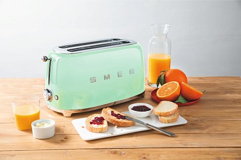 Тостер SMEG TSF02PGEU, выполненный в стиле 50-х годов, подчеркнёт индивидуальность интерьера и станет настоящим украшением Вашей кухни в квартире или загородном доме. Предназначен для обжаривания кусочков хлеба, размораживания и подогрева булочек, а также для приготовления традиционного еврейского хлеба. Корпус изготовлен из нержавеющей стали.